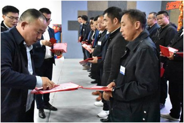 會議開始,集團(tuán)董事長樂金紅先生宣讀了對張奪、楊文華、謝落心、劉鑫四位干部人事任命。